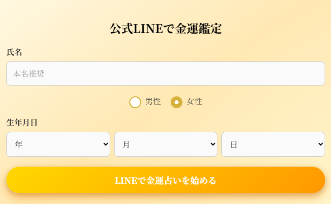 公式サイトに行って、LINEで金運占いを始めるのボタンをタップしたら、