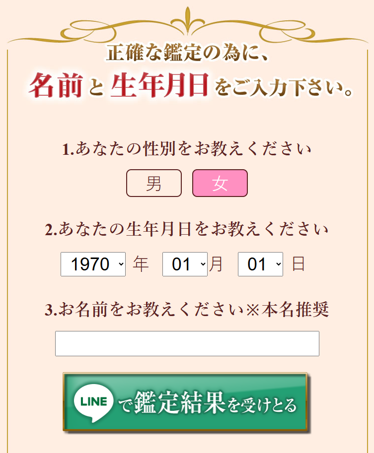 公式サイトに行って、無料鑑定はこちらのボタンをタップしたら、